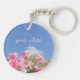 This Keychain features a pink rose bush under a blue sky. Pretty personalizable gift idea for women!