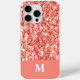 Pink rose dark coral glitter sparkles Monogram iPhone 15 Case. Personalize faux sparkly fashion accessory with custom initial of your name. Beautiful girly dark living coral orange pink faux glitter sparkles. *photo of sparkles not actual glitter!