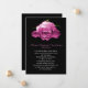 Somber jet black death announcement with photo of a pink rose bloom, at the top, covered in dew. Personalize the text to suit your needs. Can be used as a funeral mourning card too. Matching black lined envelopes available.