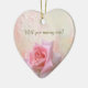Pink Rose Engagement Heart Ceramic Ornament