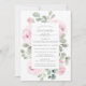 Plain white envelopes are included with paper invitations and will come to fit the invitation size you select. If you don’t need the envelopes, you may choose to not receive them by selecting the dropdown below "Envelopes" and choosing "None." If you’d like to have a design on your envelopes, you can browse all of these available envelopes to find the design that complements your Pink Rose Floral Botanical Quinceanera Invitation.