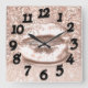Pink Rose Floral Glitter Kiss Lips Numbers Beauty Square Wall Clock