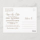 Send our pink and gold flower rose framed save the date postcards with one picture to let your guests know to block off your wedding date. The color for all wording and the background can be changed to any custom color you would like. The back side has a predesigned space for adding more information like your wedding website. If you would prefer the back side to be blank, you can delete all the text boxes or simply place a square element over the text and resize to cover the entire back (you can even change the color of the element to have a colored backer!). Be sure to check out our large selection of photo save the date cards, postcards, and magnets by browsing our Picture Save the Date collection!