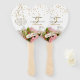 The fans are very pretty and easy to assemble. We utilized the original template and just inserted the names of our wedding party. After the product arrived we noted they read,”Made of Honor” rather than “Maid of Honor”. Upon re-checking the website we noticed the typo is in the original template and was not a mistake on our end. It is too late to return because our wedding is in just a few days but if we had time we would certainly request an exchange. See review above regarding typo.