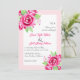Pink rose flowers and QR code floral wedding Invitation