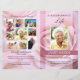 Pretty funeral program with a pink rose photo throughout. Includes space for an obituary, order of service, poems and more to create a beautiful program for your loved one. All text is easy to edit and fully customizable.