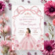 Pink Rose Gold Crown Bow Princess Girl Quinceañera Invitation