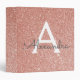Pink Rose Gold Glitter & Sparkle Monogram 3 Ring Binder