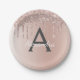 Pink Rose Gold Glitter & Sparkle Monogram Birthday Paper Plates