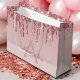Blush Pink - Rose Gold Faux Modern Ombre Dripping Glitter and Sparkle Elegant Gift Bag. This Personalized Gift Bag can be customized to include your initial and first name and makes a great birthday, bachelorette party, bridal shower or baby shower gift bag.