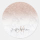 Pink rose gold glitter white marble Personalized Classic Round Sticker