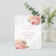 For an elegant and romantic wedding. A white background decorated with pink and rose gold florals, roses and lace. Personalize and add your names and details.