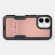 Protect your cell phone in style with a chic modern Otterbox Apple iPhone Case. Cover design features a pretty pink faux rose gold foil chevron zig-zag pattern with stripe, and your name or other customized text in a simple black typography font. This elegant and trendy metallic look phone case makes a stylish gift for her.