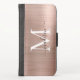 Pink Rose Gold Monogram Elegant Script Chic Metal iPhone Wallet Case
