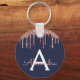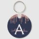 Pink Rose Gold Navy Blue Glitter Monogram Keychain