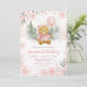 Pink Rose Gold Winter Bear Balloon 1st Birthday Invitation