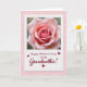 This card features a close-up photo of a fully bloomed rose, with petals fading from a pale blush at the edges into deeper pink toward the center, like a gentle hug captured in a single moment ❤️. The flower sits inside a neat white rectangular frame that resembles a small printed photo, giving the scene a keepsake feel. Beneath the framed rose, the message “Happy Mother’s Day to my Grandmother!” appears centered in deep crimson lettering that echoes the darker tones in the bloom. Tiny heart icons in the same crimson sit near the wording, adding a soft, affectionate touch without stealing focus. The background is a light pink field with faint, lighter shapes that resemble small hearts or airy swirls, creating a calm, romantic atmosphere 🌼. Soft, diffused lighting keeps the colors smooth and tender, highlighting the rose’s curled layers and delicate edges. The white frame stands out crisply against the pastel backdrop, drawing your eye from the flower down to the text. The rose’s center is tightly layered, with darker pink petals tucked inward beneath the pale outer rings.