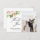 Pink Rose Greenery Elegant Script Photo Minimalist Wedding Thank You Card. Express how thankful you are to your friends and family who made your wedding an extra special with this beautiful wedding photo thank you card. All the texts are pre-arranged for you to personalize easily and quickly with your own words.
