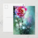 Pink rose in rain valentine postcard