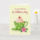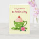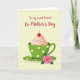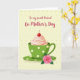This card features a green teacup on a matching saucer, decorated with small white polka dots, and it’s topped with a soft swirl of pale pink cream and a glossy red cherry that feels like a sweet little treat shared between friends ❤️. A pink rose with green leaves rests on the saucer below, like a gentle gift placed close and cared for. The background is a buttery yellow with faint, dotted texture that keeps the scene warm and cozy without distracting from the centerpiece. Across the top, the message “To my sweet Friend On Mother’s Day” is written in rich fuchsia lettering, centered above the cup. The mix of greens and pinks adds a tender, affectionate tone, as if the cup and rose are leaning into each other in quiet companionship 🌼. Soft highlights on the cream and cherry, plus light shading under the cup, give the illustration a bit of depth while staying simple and graphic. The rose petals show subtle tonal shifts, and the saucer curves are outlined with gentle, tidy lines. The cherry sits slightly right of center on the cream, with a small curved stem pointing upward against the yellow backdrop.