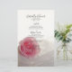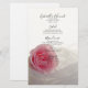Customize the pretty Pink Rose on White Wedding Menu with the details of the meal that you will serve at your classy garden party bridal shower luncheon, post wedding brunch or marriage reception dinner by adding the salad or first course, entree or second course and dessert or third course. Personalize it with the names of the bride and groom, event venue and date. This elegant custom flowery wedding menu features a floral photograph of a pink rose flower blossom with a white bridal veil.