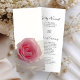 Give your wedding guests the timeline and order of your classy garden party marriage ceremony with the pretty personalized Pink Rose on White Wedding Program. This elegant custom flowery wedding program features a floral photograph of a pink rose flower blossom with a white bridal veil.