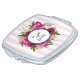 Pink Rose & Poppy Floral Bouquet Monogram Compact Mirror