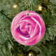 Pink rose print ceramic ornament