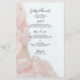 Customize the elegant Pink Rose Quartz Wedding Menu with the details of the meal that you will serve at your zen bridal shower luncheon, post wedding brunch or marriage reception dinner by adding the salad or first course, entree or second course and dessert or third course. Personalize it with the names of the bride and groom, event venue and date. This classy custom chakra theme wedding menu features a close up photograph of light blush pink rose quartz gem crystals on a bright white background. Rose quartz has been called the "stone of universal love" and has been thought to attract love. It is the perfect choice to symbolize the harmony of peace and unconditional love of marriage.