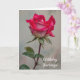 My original artwork is featured on this pretty floral card, consisting of my photograph of a beautiful rose flower, on a stem and in pink tones. The image was processed with a watercolor effect for an illustrated and whimsical appearance. The front of the card states, "Birthday Greetings!" and the inside of the card states "Wishing you a rosy day with many happy moments!". A great card for any nature and flower lover.