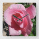 Pink Rose Sunny Garden Floral Square Wall Clock