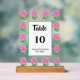 An acrylic sign for table numbers with a beautiful blue crocus flowers. The background and image can be personalized. Original artwork by W.B.