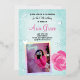 Move around and resize the silver foil shapes in this girl's birthday party invitation. Butterflies, dragonflies, and hearts surround your photo on this easy-to-customize template. Pink roses give vintage garden flare with attractive turquoise watercolor textures. Perfect for aqua, blue, aquamarine, cyan birthday party color palette. Change the colors and fonts of the text to perfectly display your celebration theme.