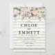 Pink Rose White Hydrangea Green Striped Wedding Invitation