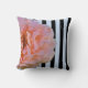 Pink Rose With Black & Blue Vertical Stripes 2 Throw Pillow