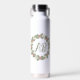 Pink Rose Wreath Monogram Water Bottle