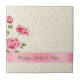 Pink Roses And Beige Damask- Happy Mothers's Day Ceramic Tile