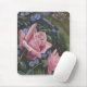 Pink Roses And Blue Flowers, romantic,r Mousepad. Fine art. Oil painting. Rosas rosa y flores azules, alfombrilla de ratón.