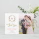 Pink Roses and Faux Gold Script | Photo Wedding Thank You Card