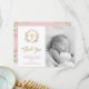 Pink Roses and Gold Script | Photo Baptism Thank You Card