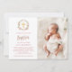 Pink Roses and Rose Gold Script | Photo Baptism Invitation