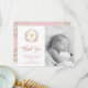 Pink Roses and Rose Gold Script | Photo Baptism Thank You Card