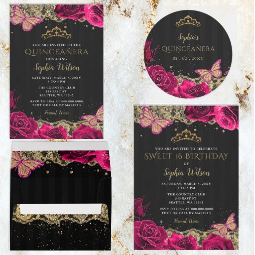 Pink Roses Butterfly Quinceanera Sweet 16 SetDesigned by Maria G