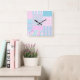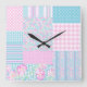 A pretty and feminine Wall Clock, with a Faux Patchwork pattern of bright pink roses on a sky blue background, dotted with little white butterflies, teamed with matching Check Ginghams, Polka Dots and Striped Patterns. Part of the Posh & Painterly 'Summer Days' collection. (This pattern can easily be adjusted to fit any of the clocks.)