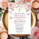 Pink Roses Butterflies Floral First Holy Communion Invitation