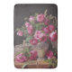 This design features a painting by the Austrian artist Ferdinand Georg Waldmüller (1793–1865). It depicts a beautiful bouquet of bright pink roses in an elegant silver vase. There is some more silverware beside the vase. The color of the flowers is incredibly vibrant. The original artwork was painted in 1843.