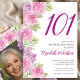 This pretty watercolor flowers and ferns with a photo on the back 101st birthday invitation is perfect for a feminine party. This design features a variety of pink roses and ferns, a photo template on the reverse side, and is a nice feminine choice for a special event to celebrate a milestone birthday.