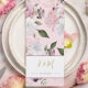 Wedding floral pink and gold Modern Elegant Wedding Menu design.