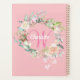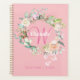 Pretty pink initial monogram 2023 planner, featuring a beautiful white script name with a complimenting pink initial that is framed by a delicate watercolor floral rose garland on a peach pink background. Designed by Thisisnotme©