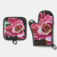 PINK ROSES FLOWERS OVEN MITT & POT HOLDER SET
